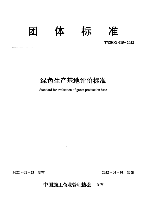 标准介绍:T/ZSQX 015-2022 绿色生产基地评价标准3WW免费标准库