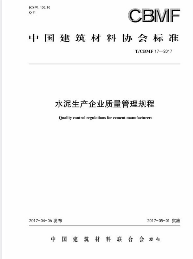 标准介绍:T/CBMF 17-2017 水泥生产企业质量管理规程Vjm免费标准库