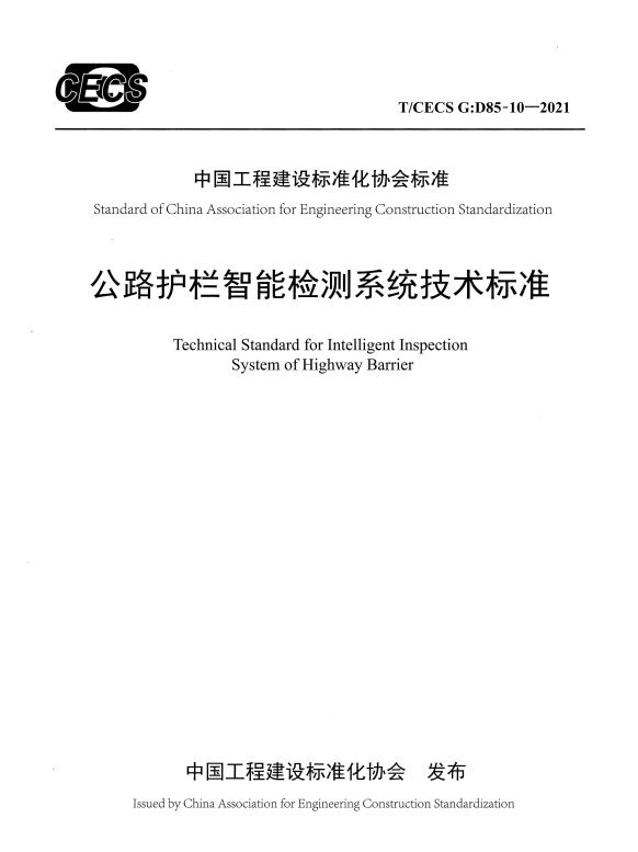 标准介绍:T/CECS G:D85-10-2021 公路护栏智能检测系统技术标准