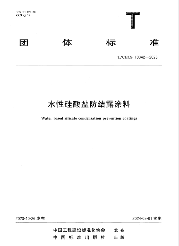 标准介绍:T/CECS 10342-2023 水性硅酸盐防结露涂料LF3免费标准库