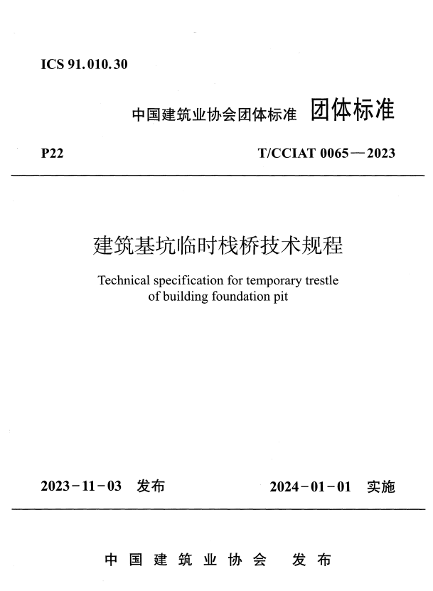 标准介绍:T/CCIAT 0065-2023 建筑基坑临时栈桥技术规程