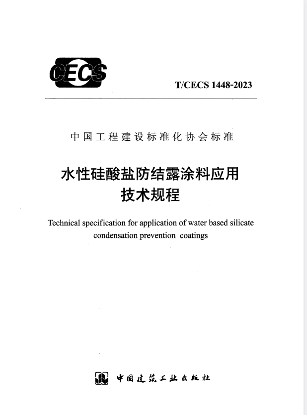 标准介绍:T/CECS 1448-2023 水性硅酸盐防结露涂料应用技术规程