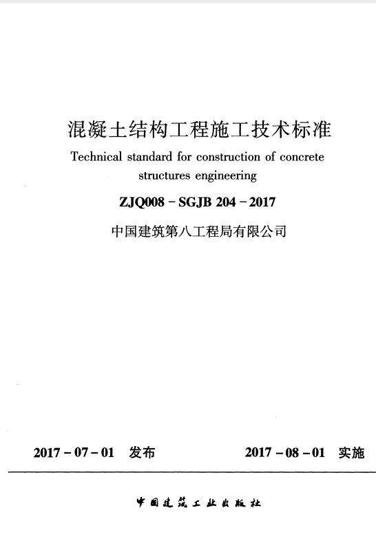 ZJQ008-SGJB 204-2017 混凝土结构工程施工技术标准