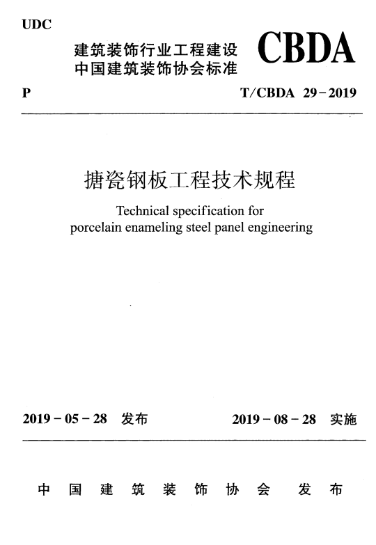 标准介绍:T/CBDA 29-2019 搪瓷钢板工程技术规程