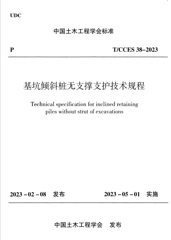 标准介绍:T/CCES 38-2023 基坑倾斜桩无支撑支护技术规程e2G免费标准库