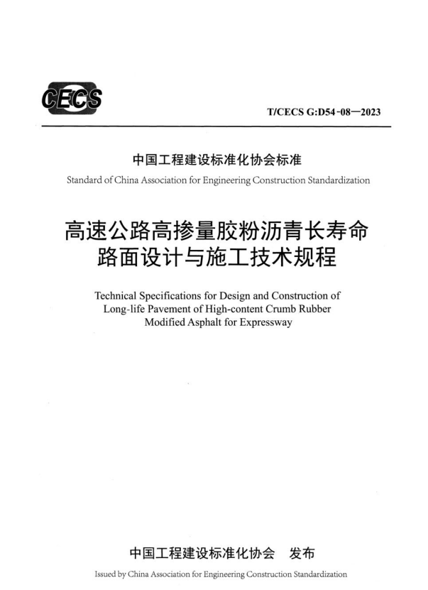 标准介绍:T/CECS G:D54-08-2023 高速公路高掺量胶粉沥青长寿命路面设计与施工技术规程