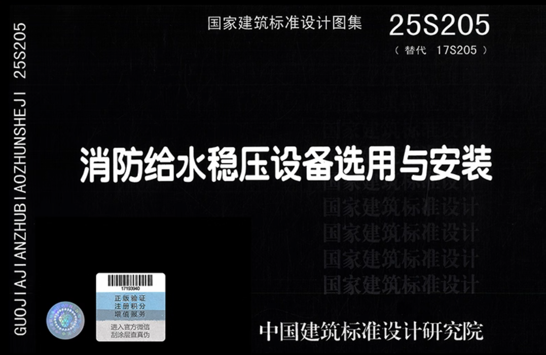 25S205《消防给水稳压设备选用与安装》国家建筑标准设计图集适用于建筑工程中有稳压要求的临时高压消火栓给水系统、自动喷水灭火系统和自动跟踪定位射流灭火系统消防给水稳压设备的选用与安装。